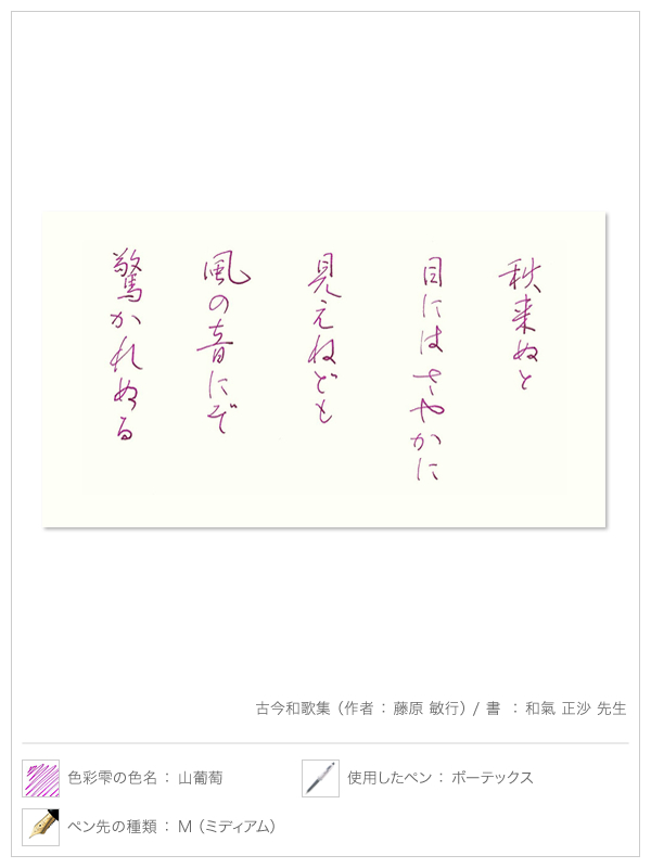 「とめ」や「はね」によってできる、インキのたまりやかすれ具合。ペン先の太さによって、書き手の筆圧によって、味わいがさまざまに変化するのが万年筆のインキの魅力。